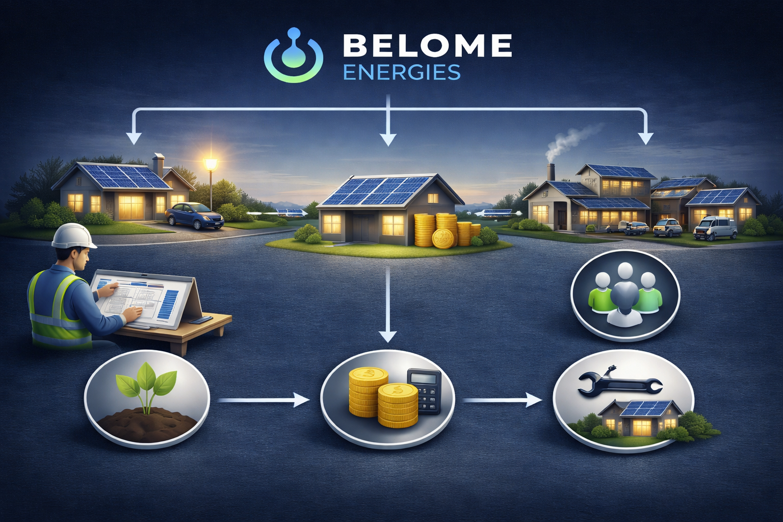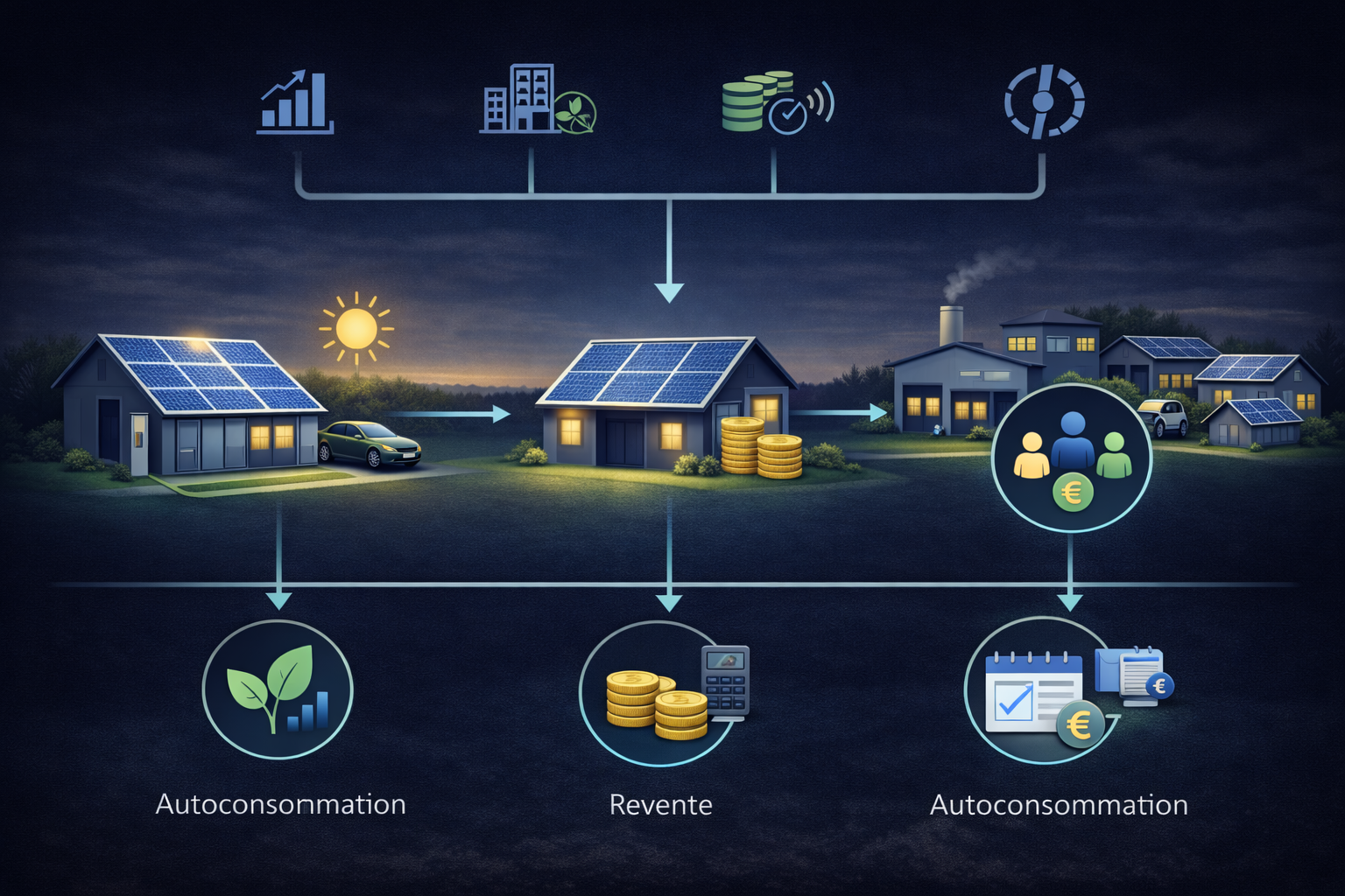 Belome Énergies vous aide à comparer les trois grands modèles économiques existants — autoconsommation, revente et autoconsommation collective — pour déterminer la solution la plus pertinente selon votre profil de consommation, votre activité et votre budget.